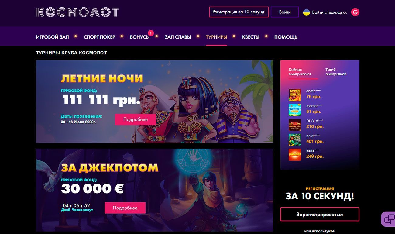 Лучшие игровые автоматы в онлайн-казино Космолот